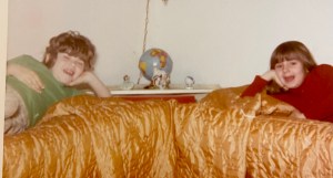 As we talked, I relayed a situation involving my sweet disabled sister, Lisa. I love Lisa and she was my first-ever roommate and best friend. The pic I snipped in above is of the two of us in 1972, happy as clams showing off our new bedroom and our brand-new bedspreads (fully flammable, I’m sure). 😉