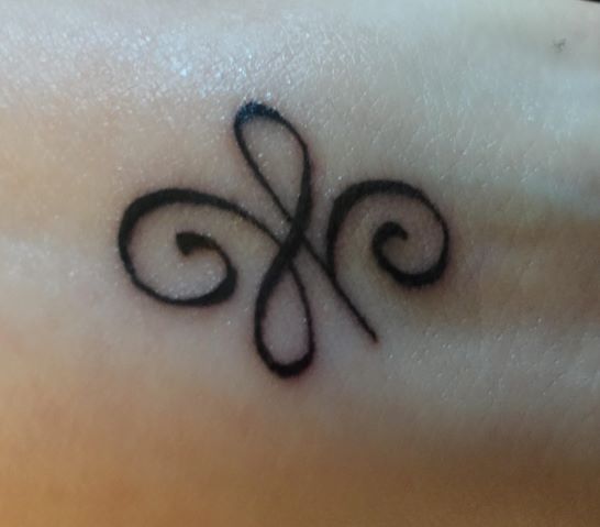 Another example? Almost five years ago, before the ancestry.com confirmation data dump and a bit on a whim, my dear one Linda and I took the leap to get ‘sister’ tattoos. She’s not my blood relation, but in all the ways that matter, she surely is. We were on a work trip – presenting at a conference – and decided (okay, with substantial prodding on my part) 😊 that it was time to bond with a swirl of ink, tattoo-style: