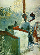 On the left? Parisienne women captured in misty-looking brushstrokes by Toulouse-Lautrec – The Box, 1889: On the right? Seven decades later, a dreamy photo captured by Leiter in a Paris cafe in 1959: