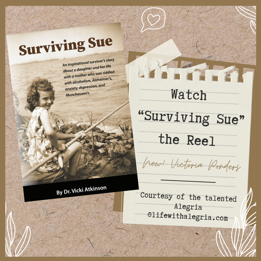 Thanks to my dear friend Alegria for her talents and support. In addition to her riveting review of “Surviving Sue” (which I wrote about here) she created an Instagram reel…a video that made my heart skip a beat. Oh my goodness. See below.