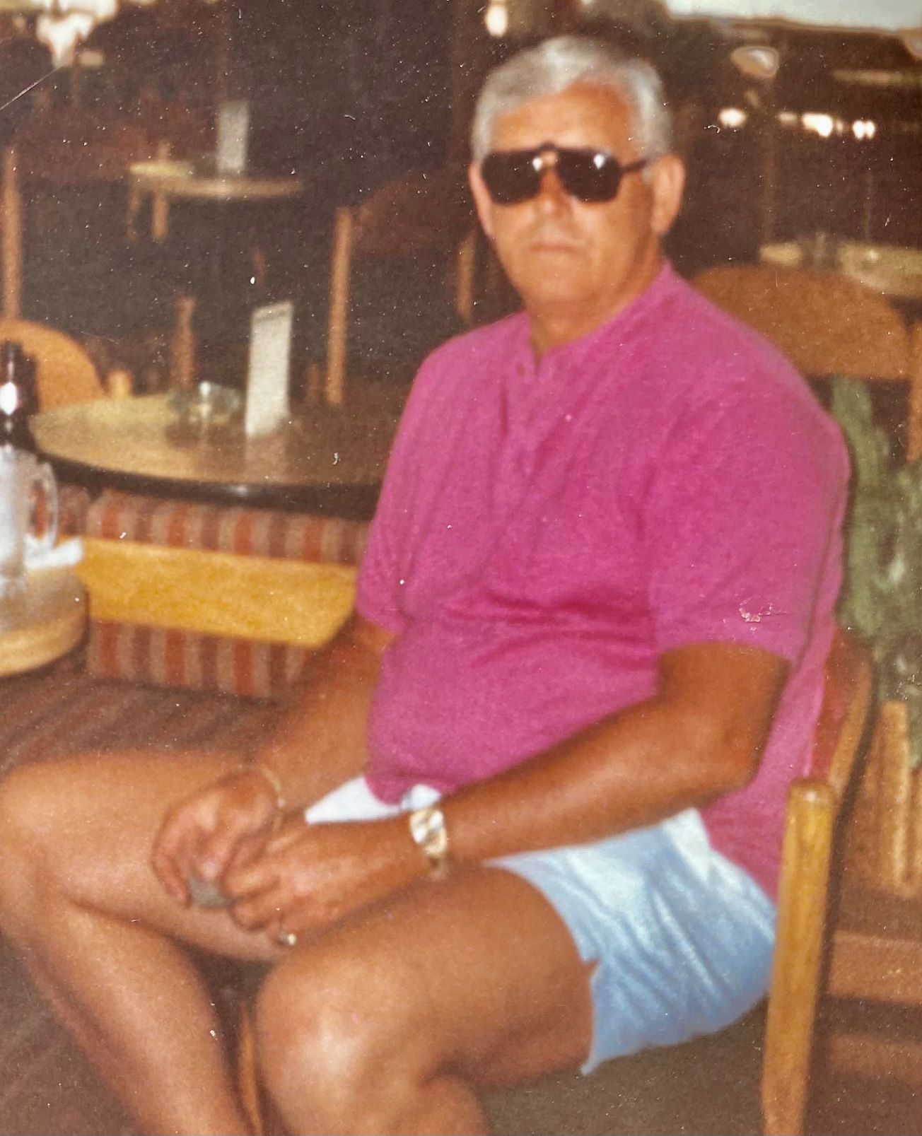 All of this prompted a search for a photo – one Lisa loves of our dad in a Miami Vice pink shirt. That show changed him. Sonny warmed up his button-downed wardrobe with plenty of pinks and pastel greens and blues and Lisa remembers every bit. Every shirt.