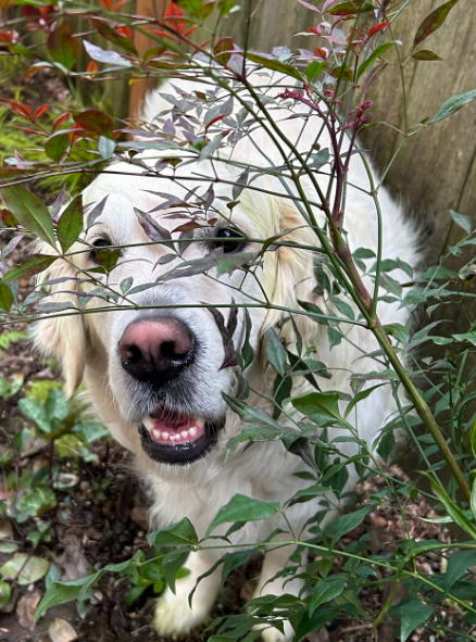They weren’t alone in their subterfuge. My dear friend Wynne’s doggo, Cooper, was caught in a peek-a-boo pose this week and the similarity to the deer made me smile: