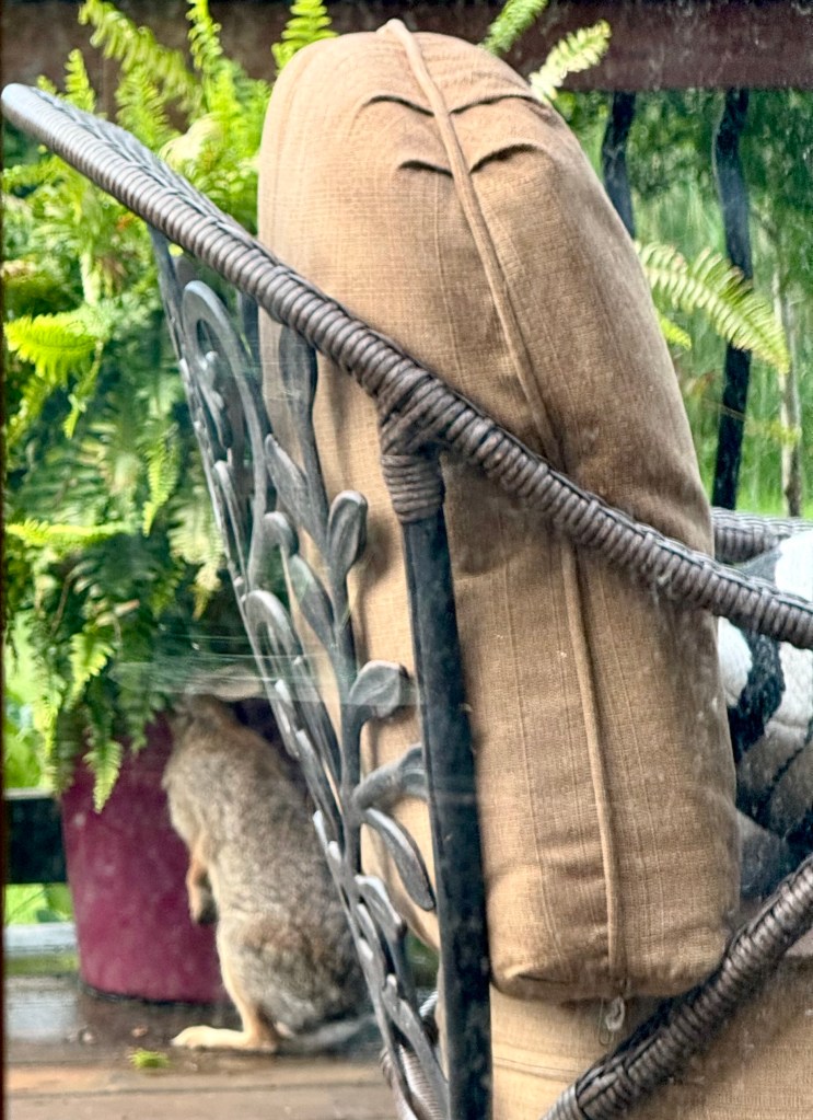 Last August I shared a post, “Books, Bunnies and Forgiveness” and included a few snaps of a baby bun-bun. A welcome visitor on our deck. I can’t say for sure, but I think the little dude (or dudette) is now a teenager and decided to visit again. Same spot. Same ambition. Figuring out where the squirrel hid the walnuts.