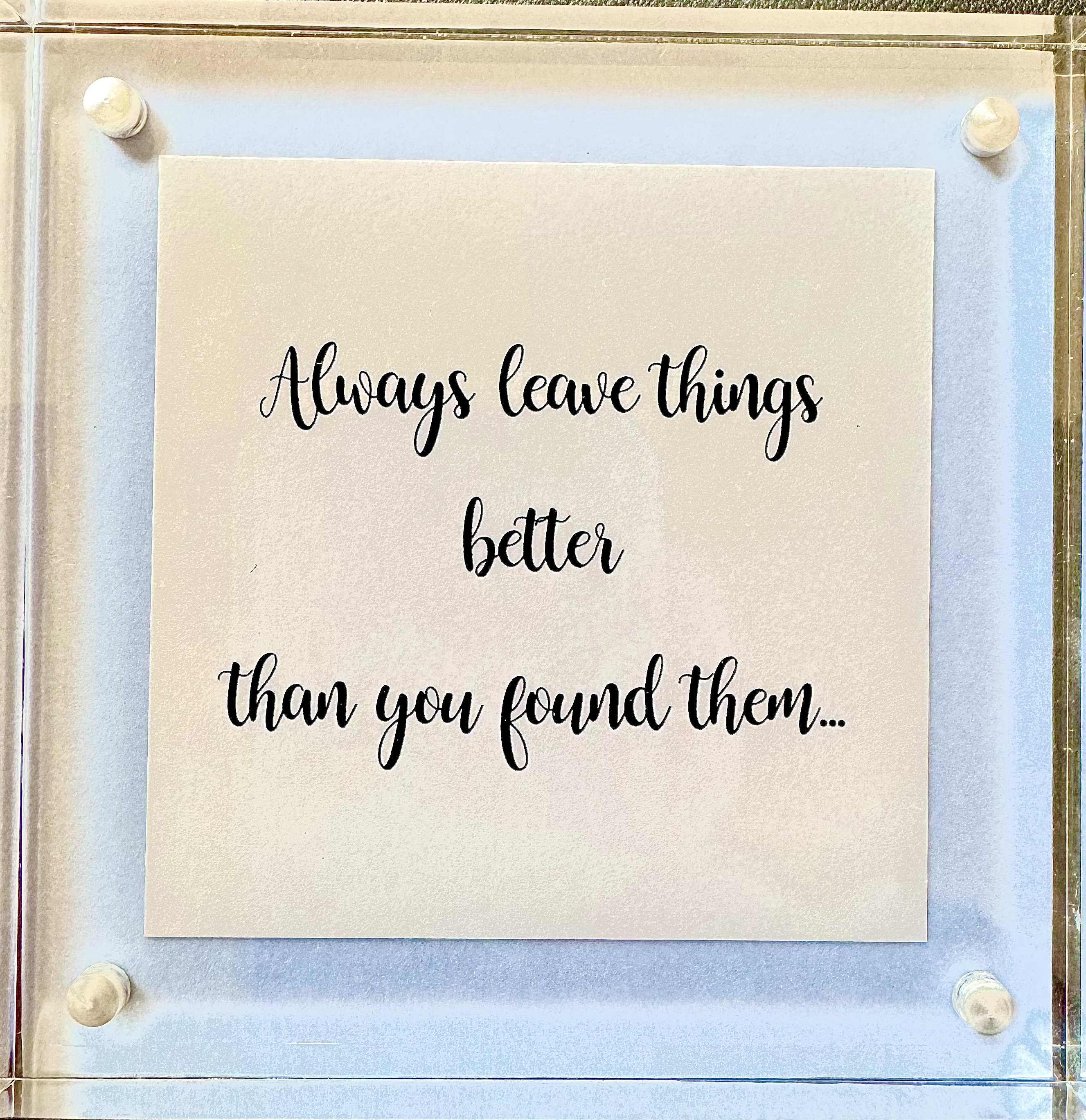 For years I lived and worked by a motto instilled in me by my dad – “Always leave things better than you found them…”.