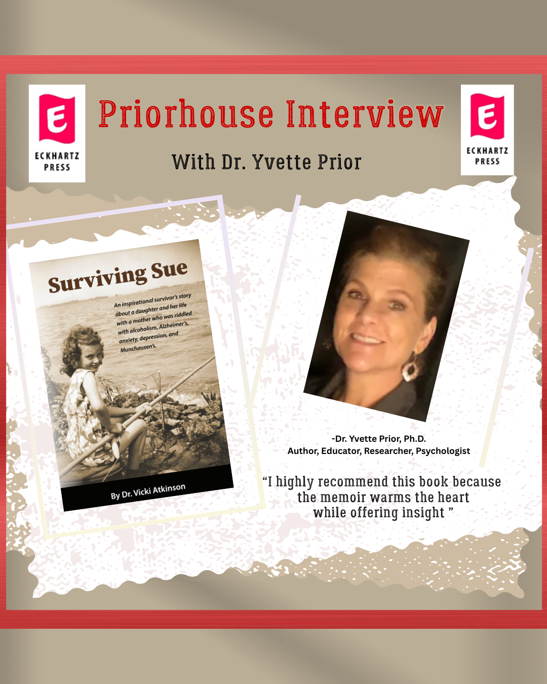 Today I have the pleasure of highlighting my interview with Dr. Yvette Prior, and her generous praise for “Surviving Sue”: