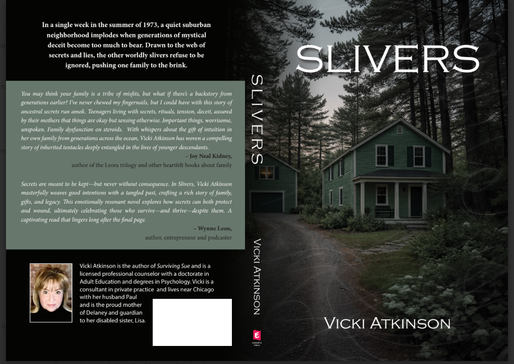 Check out this link to learn more about my book “Surviving Sue” – all about resilience and love. Check out this link to pre-order “Slivers”…a ghost story with surprising twists.
